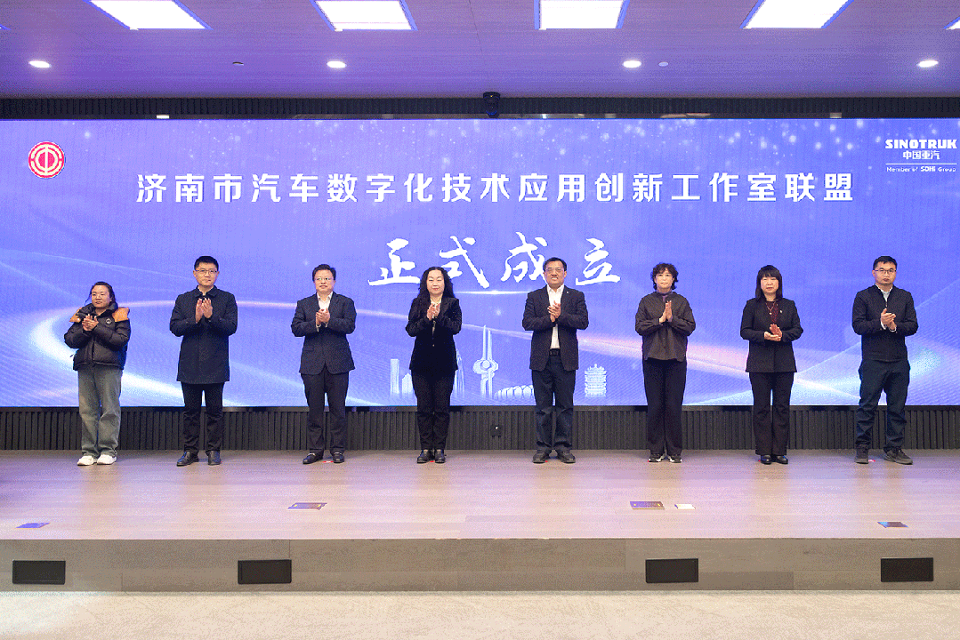 To thoroughly implement the requirements of the reform on strengthening the industrial workforce in the new era and continuously improve the quality and effectiveness of the establishment of employee innovation studios, the establishment of the Jinan Automotive Digital Technology Application Innovation Studio Alliance and the project signing ceremony were grandly held at Sinotruk on December 25. Gong Junqing, Member of the Party Leadership Group and Vice Chairman of the Jinan Municipal Federation of Trade Unions, and Jiang Pengpeng, Deputy Secretary of the Party Committee, Director, and Chairman of the Labor Union of SINOTRUK, attended the ceremony and delivered speeches.
