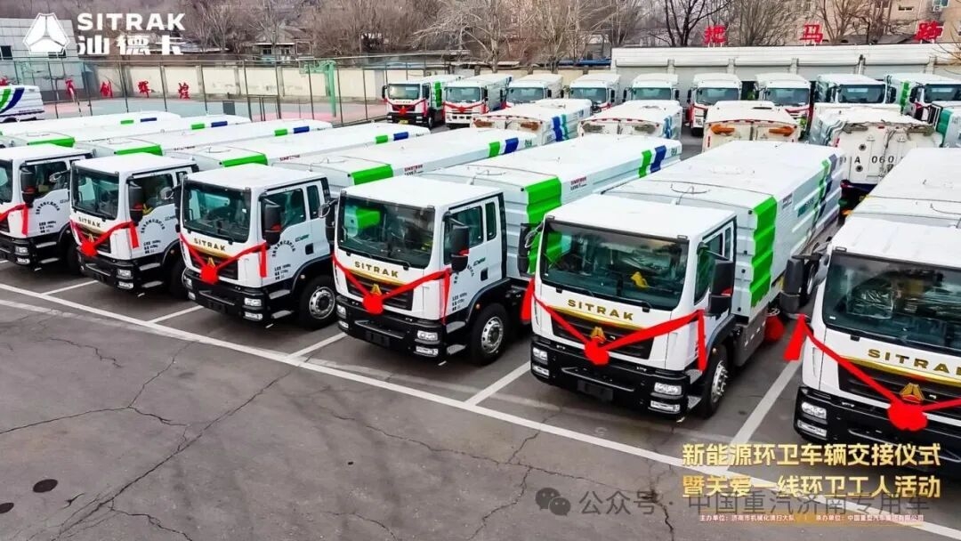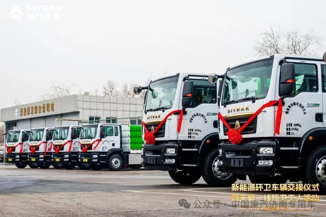 2026年1月14日上午,新能源环卫车辆交车仪式暨关爱一线环卫工人活动在济南市机械化清扫大队院内举行。济南市政府副秘书长刘念成、济南市城管局党组书记、局长顾朝霞、市发改委环境资源处二级调研员张学明、市财政局经济建设处副处长张加昌等领导出席,中国重汽集团商用车销售部、中国重汽集团济南专用车有限公司代表及济南市机扫大队一线职工代表、媒体记者共同见证了这一标志着济南市环卫绿色换装的重要时刻,活动由济南市城管局党组成员、副局长刘真主持。